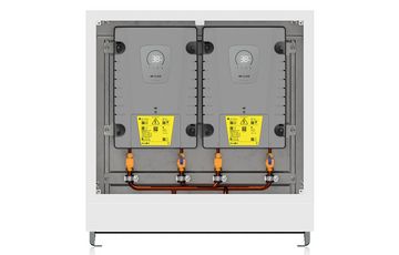 Zwei vollelektronisch geregelte Durchlauferhitzer im Spezial-Einbaurahmen für die Aufputz- und Unterputzmontage mit Bluetooth-Fernbedienung