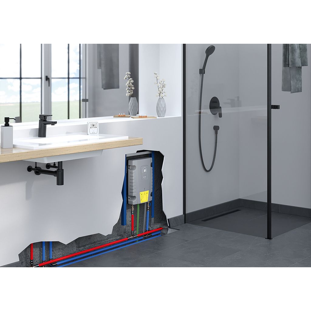 Elektronisch geregelter Untertischdurchlauferhitzer im Kompaktformat mit Funkfernbedienung