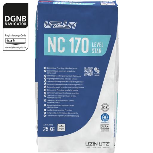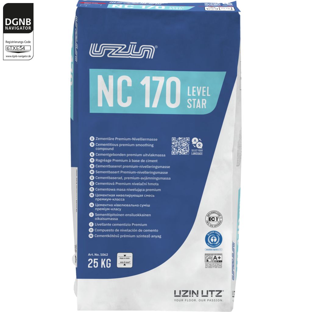 UZIN NC 170 LevelStar ist eine Selbstverlaufende, hoch belastbare Bodenspachtelmasse für alle Bodenbeläge und Parkett für jedenSchichtdickenbereich.