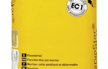 Servoflex 2.0 mit sauberem Wasser in gewünschter Konsistenz klumpenfrei anrühren. Nach ca. 5 MinutenReifezeit nochmals umrühren. Anschließend mit der entsprechenden Kammspachtel (siehe Tabelle) auf den