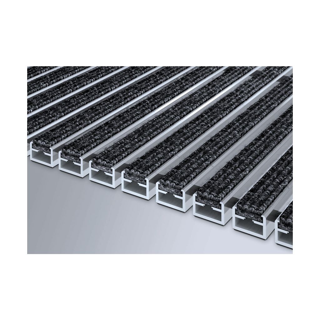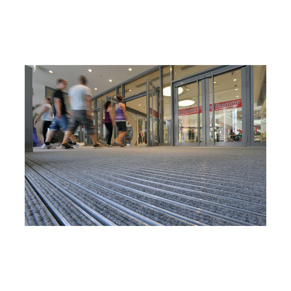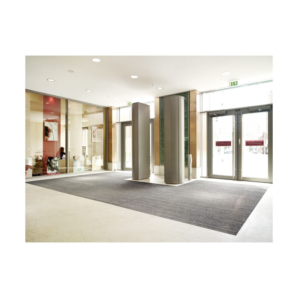 Die belastbare Eingangsmatte. Für Gebäude mit extremer Frequentierung wie Einkaufszentren und Flughäfen. Besonders geeignet für die Aufnahme von Feinschmutz.Für den Innen- und überdachten Außenbereich.