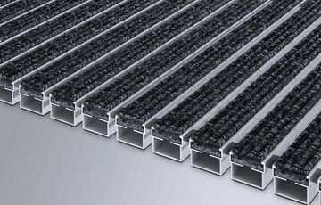 Die erfolgreiche Eingangsmatte mit wechselbarer Einlage. Für Wohn- und Geschäftsgebäude mit mittlerer Frequentierung. Besonders geeignet für die Aufnahme von Feinschmutz.