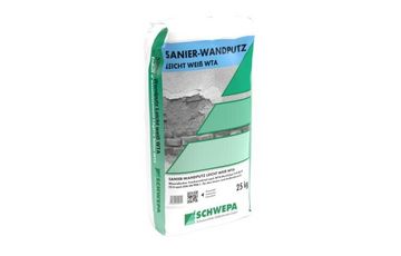 SCHWEPA Sanier-Wandputz leicht weiß WTA dient zum einlagigen Verputzen von feuchtem und salzgeschädigten Mauerwerk im Innen- (z. B. Kelleräume) und Außenbereich (ab OK Gelände). SCHWEPA Sanier-Wandputz leicht weiß WTA ist neben dem…