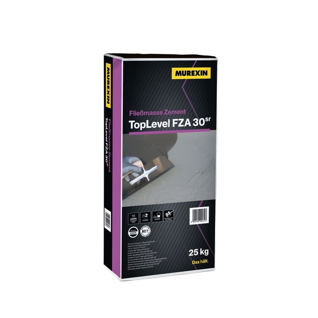 TopLevel FZA 30ˢʳ ist eine hoch staubreduzierte, zementgebundene, kunststoffvergütete, schwundreduzierte, sehr gut verlaufende, nivellierende Fließmasse für den Innen- und Außenbereich, zurHerstellung planebener Unterböden, in Schichtdicken von 3 bis 30 mm.