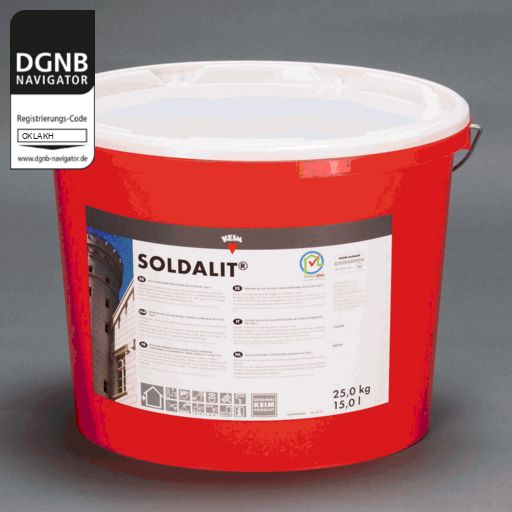 KEIM Soldalit ist eine hochspezialisierte,silikatische Fassadenfarbe auf Basis einer bewährten Bindemittelkombination von Kieselsol und Wasserglas.Diese Bindemittelkombination ermöglicht silikatische Anstriche nicht nur auf mineralischen, sondern auch auf einer Vielzahl organischer Untergründe – direkt und ohne zusätzliche Haftbrücken. Damit begründet KEIM Soldalit eine neue Generation der Silikatfarbe, die Sol-Silikatfarbe, die eine bis heute nicht gekannte Anwendungsbreite erlaubt. Gefüllt und pigmentiert mit witterungsbeständigen Füllstoffen und rein anorganischen Pigmenten verbindet KEIM Soldalit alle Vorteile der klassischen Dispersionssilikatfarbe mit der Untergrundvielfalt organisch gebundener Farbsysteme.