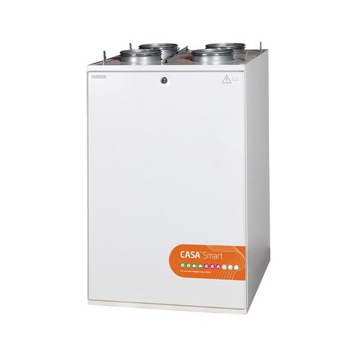 Leistungsfähiges Wohnraumgerät mit Anschluss an der Oberseite und niedrigem Schallpegel zum Einbauin einem warmen Raum. Energieklasse A+. (108-468 m3/h, 85 kg)