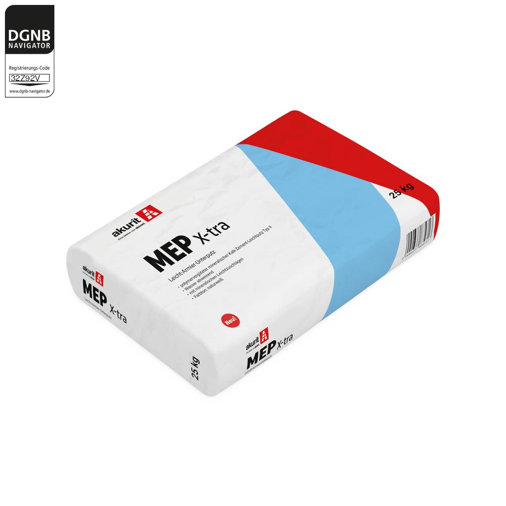 akurit MEP X-tra Leicht-Armier-Unterputz ist ein mineralischer Kalkzementleichtputz Typ II für alle Mauerwerksarten. Er kann als Unterputz mit vollflächiger Armierungsgewebeeinlage verwendet werden.Contact the manufacturer