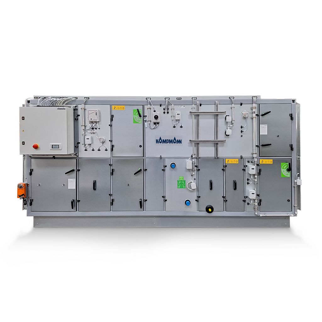 This air handling unit is designed for indoor installation and provides reliable air treatment for various applications. It is equipped with a register made of copper tubes and aluminium fins, a rotary heat exchanger for efficient energy recovery, high-performance fans for air distribution and filters to ensure clean supply air. The robust design ensures durability, energy efficiency, and compliance with modern building requirements.Reference to the DGNB system