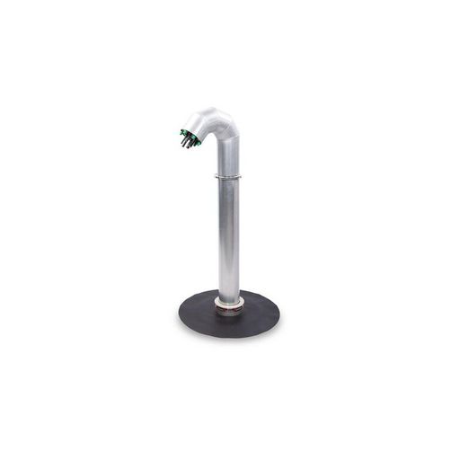 SchwanenhalsFlachdachdurchführung, zum Andübeln, zur Aufnahme von Kabeln mittels KRASO Wechseldichteinsatz - geteilt - (nicht im Lieferumfang enthalten), 360° schwenkbar, Einbindung in die Dachabdichtungsbahn mittels KRASO Folienklemmflansch Typ FKF, öl- und bitumenbeständig, DrehmomentKontrollMutter KRASO DKM, UV-Schutz mit umlaufender, unterseitiger Tropfkante und Verdrehsicherung, Fußabdichtung zur Dachöffnung mit EPDM Dichtung.