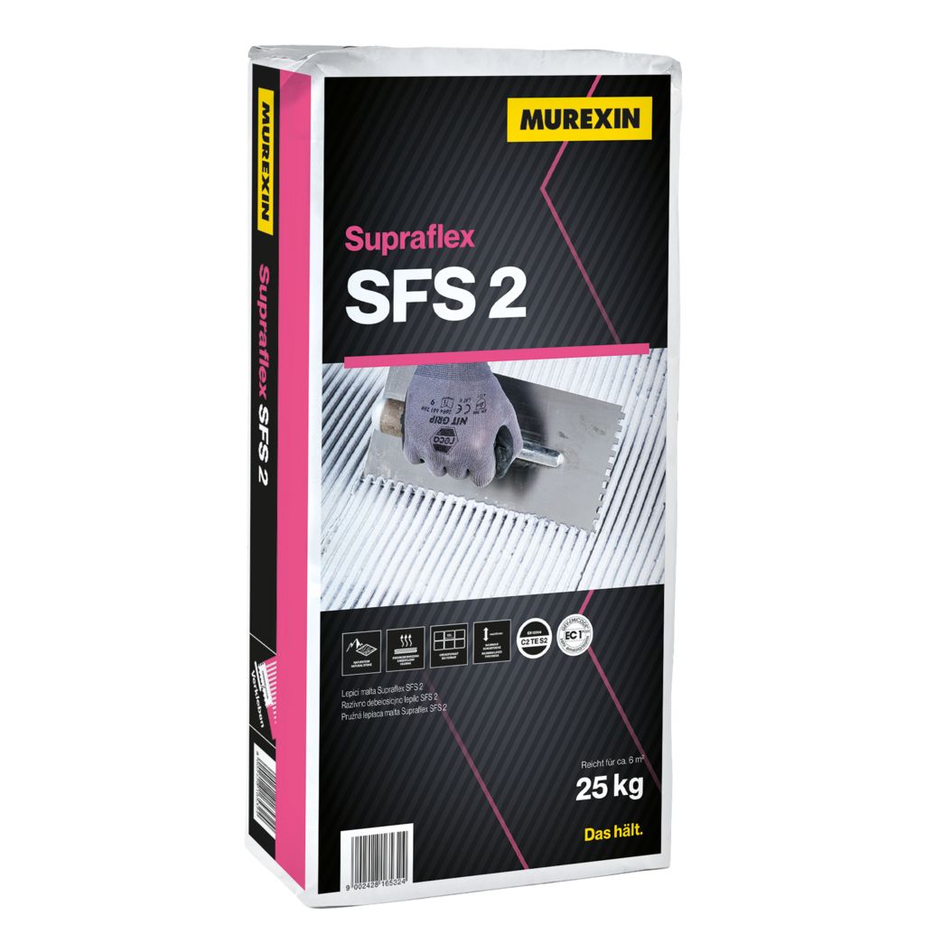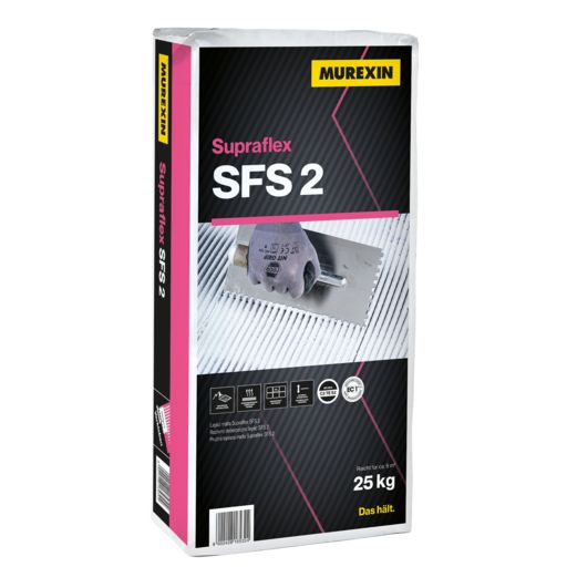 Weißer, einkomponentiger, pulverförmiger, höchst vergüteter, wasser- und frostfester, hydraulisch abbindender, lebensmittelechter Klebemörtel für die flexible Verklebung.Im Innen- und Außenbereich zur Verlegung von keramischen Wand- und Bodenfliesen, Platten, Feinsteinzeug, feuchtigkeitsunempfindlichen Natursteinen sowie bei einer erhöhten thermischen oder statischen Belastung. Besonders geeignet für die Verlegung von keramischen Belägen mit erhöhten Anforderungen (Abbau von auftretenden Spannungen).