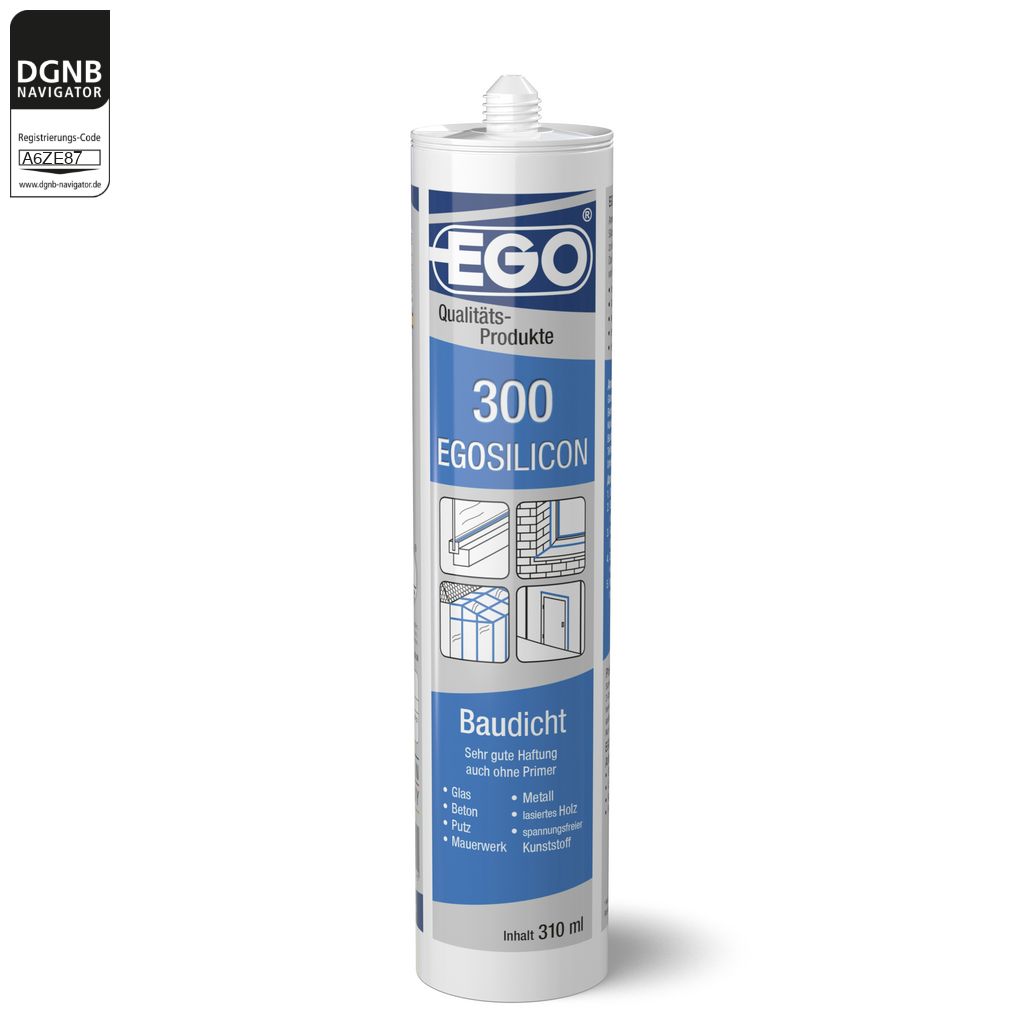 EGOSILICON 300 BAUDICHT ist ein anwendungsfertiger, hochwertiger Einkomponenten-Silikon-Dichtstoff, der über Reaktion mit Luftfeuchtigkeit zu einem elastischen Endprodukt vulkanisiert. Das Produkt ist farbig fungizid eingestellt und frei von 2-Butanonoxim (MEKO) sowie von Methylisobutylketoxim (MIBKO). DAs Produkt eignet sich für Glasversiegelung, Anschluss- und Bewegungsfugen, Beton, Putz, Mauerwerk, Metalle, spannungsfreie Kunststoffe und lasiertes Holz. Für abriebfeste Verfugungen EGOSILICON 360 verwenden.Instructions for use