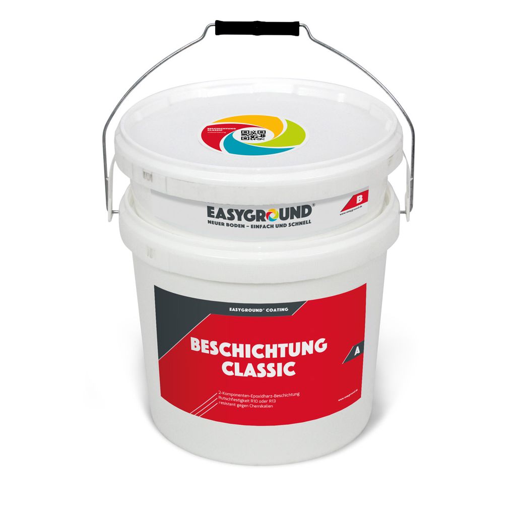 Sie brauchen einen Bodenbelag für Ihre Industrie, Ihren Keller oder Ihre Garage?Unsere EASYGROUND Beschichtung Classic ist das ideale Produkt für Sie. Die Beschichtung ist autoreifenbeständig und dampfdiffusionsfähig. Somit ist die EASYGROUND Beschichtung Classic die perfekte Lösung, besonders für Garagen- oder Kellerböden. Auch eignet sich diese Beschichtung für Industrie- und Lagerhallen mit leichter und mittlerer Beanspruchung des Bodens. Sie braucht keine Grundierung als Grundlage, weil die erste Lage der Beschichtung Classic mit Wasser verdünnt aufgetragen wird (1. Durchgang).