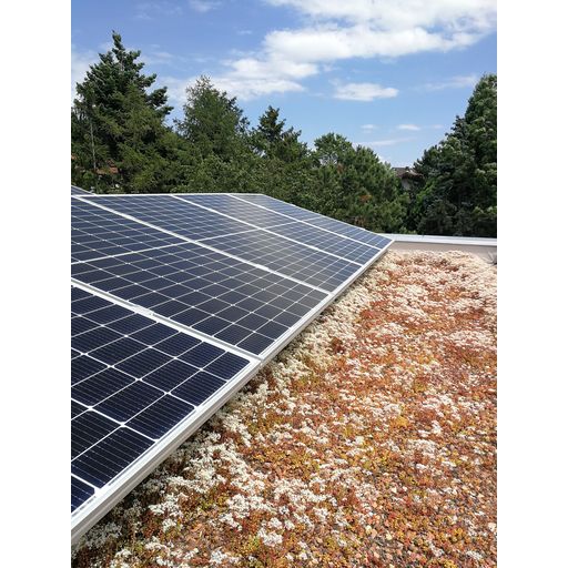 Die Verdunstungskühlung der Vegetation führt zu einer Effizienzsteigerung der Photovoltaikanlage. Gleichzeitig leistet die Dachbegrünung einen wichtigen Beitrag zum Erhalt des natürlichen Wasserhaushaltes und zur Steigerung der Biodiversität.