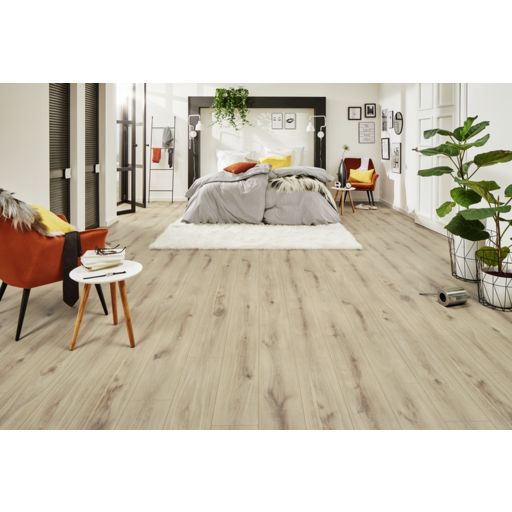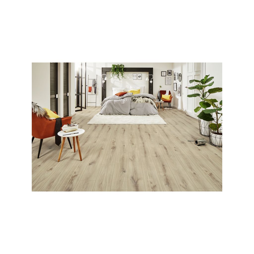 LOGOCLIC Aquaprotect Laminat ist der Premiumboden mit Spritzwasserschutz und Feuchteschutz-Technologie. Die O.R.C.A. Moisture Defense Technology macht Aquaprotect ausgesprochen robust gegen Abrieb und Kratzer. In diesem Produktionsverfahren werden die Holzfasern durch mehrfache mechanische Aufbereitung besonders klein. Anschließend werden die Fasern mit einem speziellen organischen Bindemittel umschlossen und somit gegen Feuchtigkeit abgekapselt. Seine Widerstandsfähigkeit und die Abriebklasse AC5 machen den ökologischen Designboden Aquaprotect nicht nur zuhause zu einem starken Partner, sondern auch in gewerblichen Bereichen. LOGOCLIC Aquaprotect ist zu 100 % kohlendioxidneutral und enthält weder Weichmacher noch PVC.8 mm Stärke