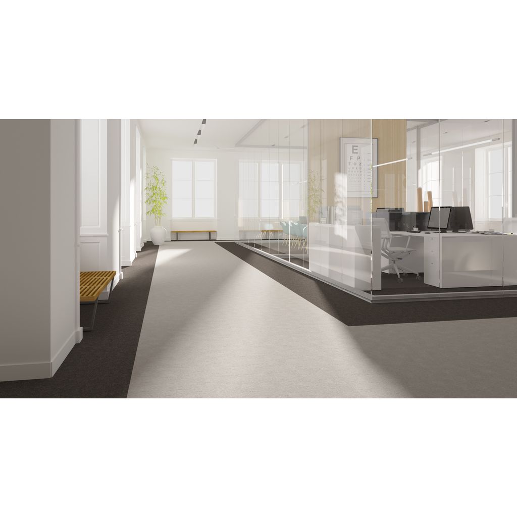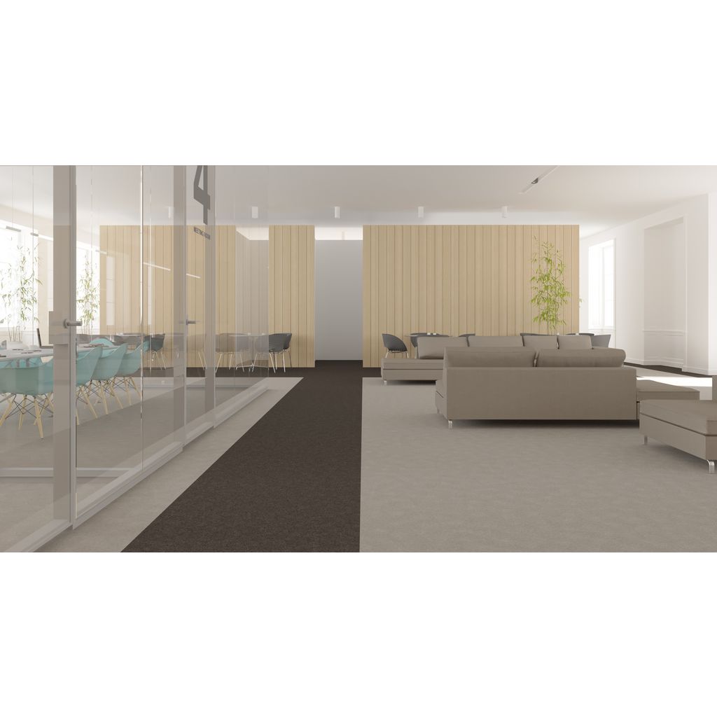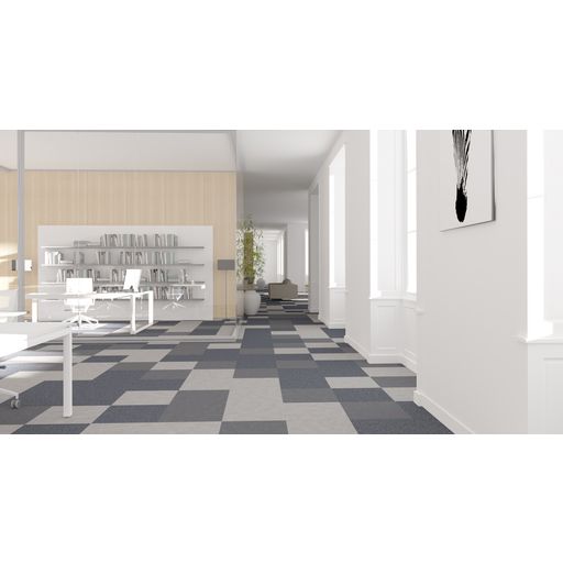 Eine kompakte Objekt-Feinschlingenqualität mit sehr gutem Preis-Leistungsverhältnis. Effektvoll die dreifarbige Ton-in-Ton Melierung, die eine sehr ruhige und ausgewogene Flächenwirkung erzeugt. Solution Dyed-Fasermaterial.Bahnenware (TR+duraAkustik®) und Module (duraTile®+duraAkustik®).