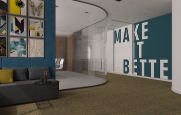 Eine bewährte und kosteneffektive Lösung wird mit der hohen strapazierfähigen eingebauten dura Tuftingqualität Twist SD und ihrem speziellen Akustikrücken ein optimales Geräuschniveau innerhalb des Gebäudes erreicht. Dies ist besonders in den vorhandenen Großraumbüros wichtig, in denen die Menschen sowohl Raum für konzentriertes Arbeiten als auch für die Kommunikation in Gesprächen und Meetings nutzen.