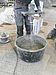Unmittelbar nach dem Anmischen wird der Vergussbeton eingebaut. Um Lufteinschlüsse zu vermeiden wird nur von einer Seite aus kontinuierlich eingefüllt. Um den Fließvorgang zu unterstützen, kann durch Stochern mit einer Drahtschlinge nachgeholfen werden.