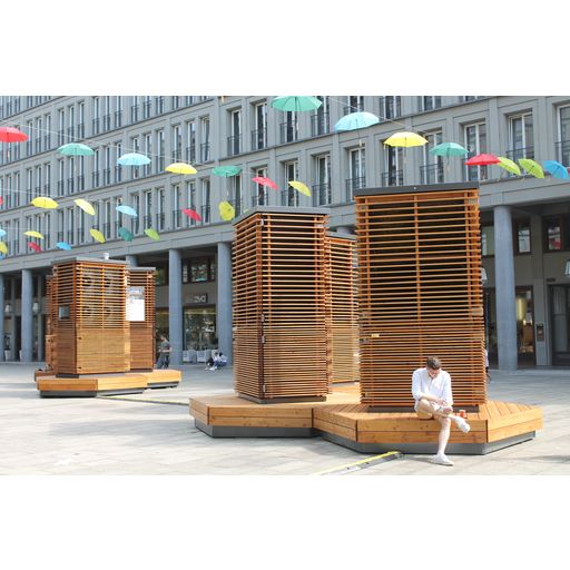• Der CityTree kann an warmen Tagen die Temperatur in seiner direkten Umgebung um bis zu 4 °C kühlen.