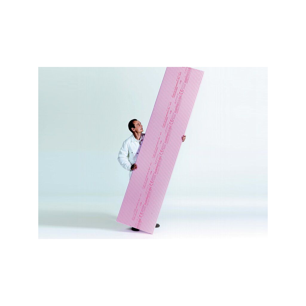 Höchstwärmedämmende, druckfeste und wasserabweisende Dämmplatte aus extrudiertem Polystyrolhartschaum (XPS) mit Stufenfalz für Anwendungen nach DIN 4108-10.