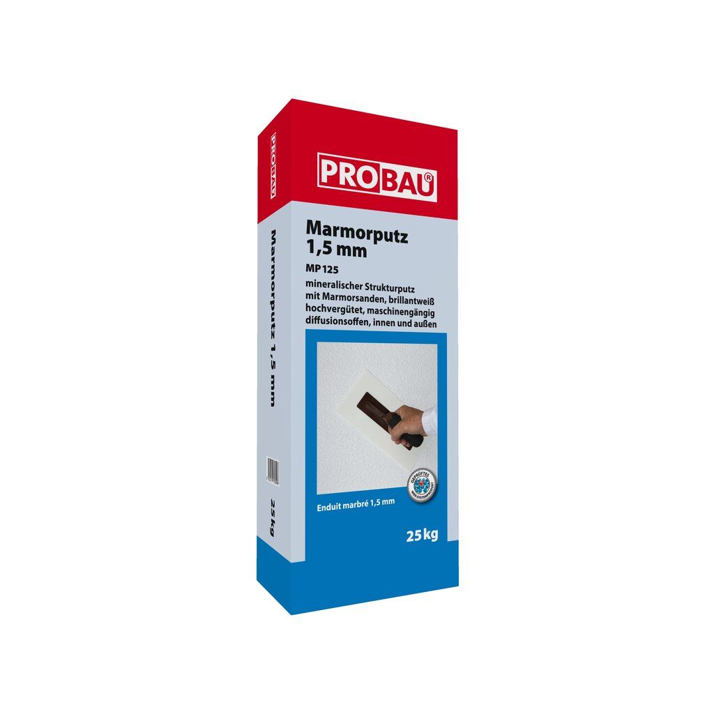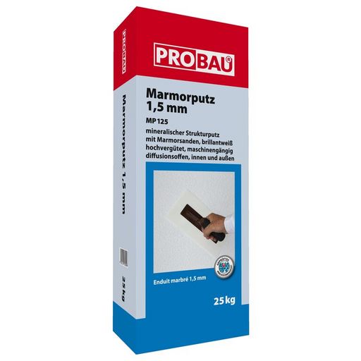 Marmorputz ist ein hoch vergüteter, maschinengängiger mineralischer Werk-Trockenmörtel. Marmorputz eignet sich zur Herstellung von widerstandsfähigen, dauerhaften Oberputzen im Außenbereich als auch zur dekorativen Gestaltung von Innenräumen in Kratzputzstruktur. Marmorputz kann auch modelliert oder frei strukturiert werden. Geeignet für Probau WDV-Systeme entsprechend derjeweiligen Zulassung.