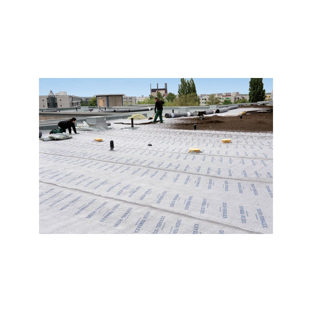 DELTA® - TERRAXX: Universelles Schutz- und Dränsystem für begrünte sowie begeh- und befahrbare Flächen und für vertikale Anwendungen bei Einbautiefen bis 10 m.Wie alle DELTA®-TERRAXX Typen dient der Materialverbund aus druckfester Noppenbahn und aufkaschiertem filterstabilen Geotextil (GRK 2) als Dränschicht und schützt druckstabile Untergründe wirkungsvoll vor mechanischen Einwirkungen. Die Bahnen verfügen über einen integrierten Selbstkleberand und einer geprüften Langzeitbeständigkeit von 100 Jahren.