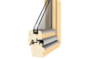 Holzfenster 78 mm Bautiefe mit Dreifachverglasung mit Ug 0,7 W/m²K (oder Zweifachglas 1,1 W/m²K) und Uw = 0,91 W/m²K.