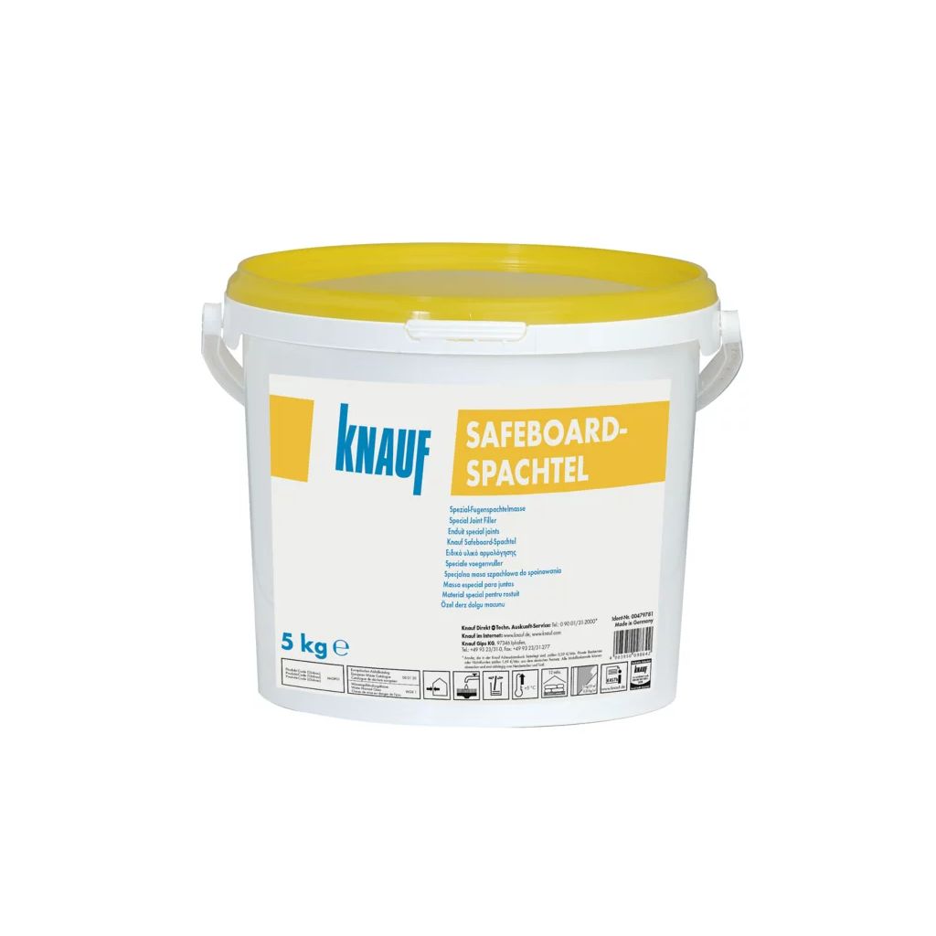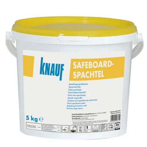 Knauf Safeboard-Spachtel ist ein auf Spezialgipsbasis aufgebautes, kunststoffvergütetes, durch Zusätze auf seine Anwendungsbereiche abgestimmtes, pulverförmiges Spachtelmaterial.Safeboard-Spachtel schirmt Röntgenstrahlung ab und ist zur Kenntlichmachung gelb eingefärbt.