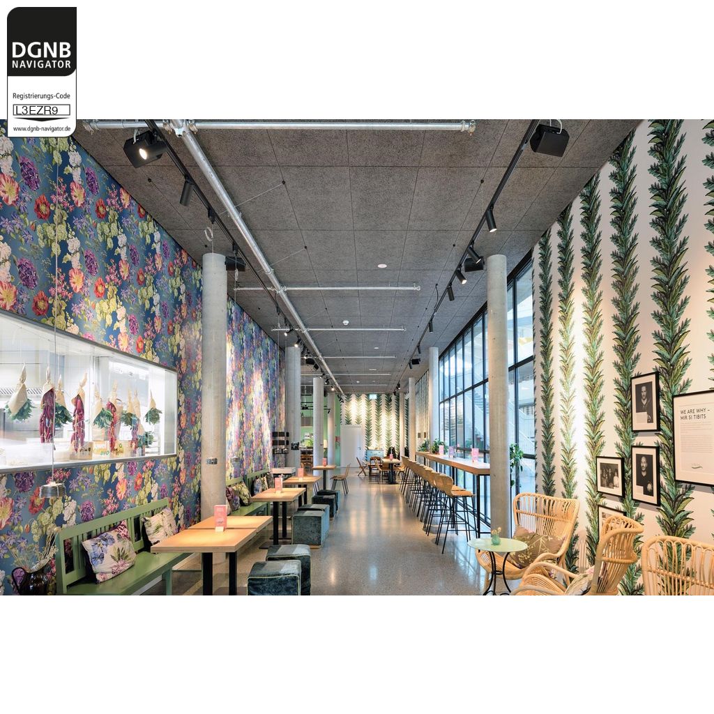 Troldtekt-Akustikplatten für Decken und Wände bestehen aus zertifiziertem Holz, einem reinen Naturmaterial, und aus Zement, der aus dänischen Rohstoffquellen stammt. Die Kombination aus Holz und Zement schafft Troldtekts einzigartige schallabsorbierende Eigenschaften und stellt eine gute Akustik in der Architektur sicher. Das Material hat eine natürliche Festigkeit, verträgt feuchte Umgebungen und bietet gleichzeitig einen effektiven Brandschutz. Troldtekt besteht aus zertifiziertem Holz, einem reinen Naturmaterial, und aus Zement, der aus dänischen Rohstoffquellen stammt. Die Nachhaltigkeit von Troldtekt ist durch den gesamten