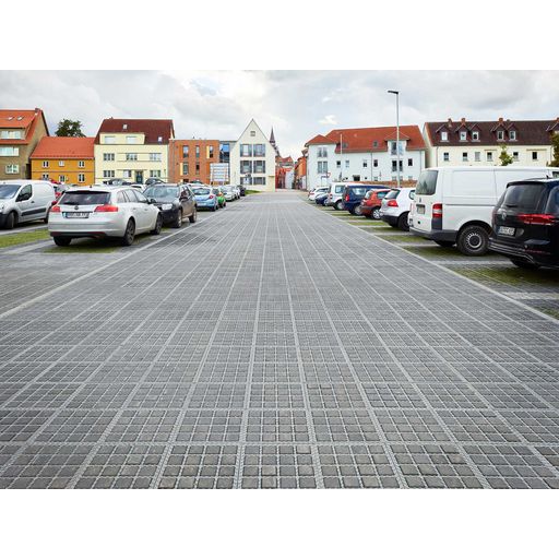 Die Komplettlösung TTE® directPAVE wird mit TTE® Pflastersteinen befüllt geliefert und kann direkt verlegt werden. Auch eine maschinelle Verlegung ist möglich.
