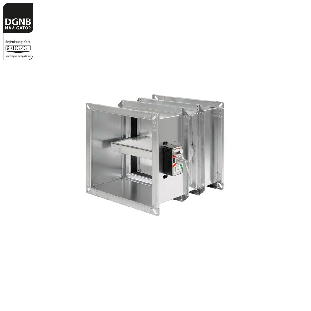 Wartungsfreie FK90 Brandschutzklappe verhindert die Übertragung von Rauch und Feuer durch Lüftungsleitungen einer raumlufttechnischen Anlage in andere Brandabschnitte oder Geschosse. FK90 Brandschutzklappen entsprechen der europäischen Produktnorm EN 15650 und verfügen über eine Leistungserklärung und das CE-Kennzeichen.Klassifizierung der FK90 nach EN 13501-3: EI 30/60/90/120 (ve-ho, i <-> o) SC10000. Die Anwenderhandbücher der Wildeboer Bauteile GmbH sowie Einbau- und Montagevorschrift sind zu beachten.