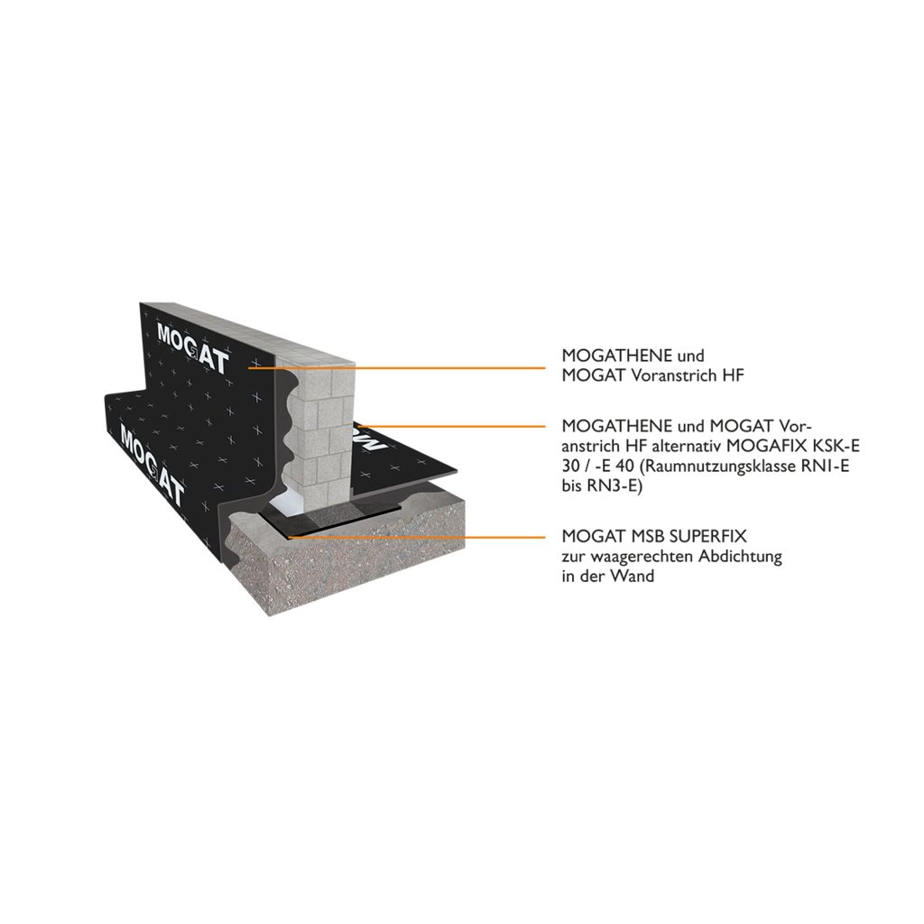 MOGAFIX KSK-E 40 findet Verwendung als Feuchtigkeitssperre auf erdberührenden Bodenplatten, als Dampfsperre auf Geschossdecken, unter denen hohe Luftfeuchtigkeit zu berücksichtigen ist.