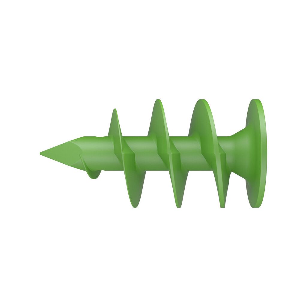 Das Granulat zur Herstellung des fischer Gipskartondübels GK Green wird mindestens zur Hälfte aus nachwachsenden Rohstoffen gewonnen. Diese stehen nicht in Konkurrenz zu Anbauflächen für Nahrungs- und Futtermittel. Der Gipskartondübel GK Green verfügt über die gleichen Leistungsmerkmale und Tragfähigkeit wie das Original. Der Dübel wird in der Vorsteckmontage oberflächenbündig in einfach und doppelt beplankten Gipskarton eingedreht. Der spiralförmige Dübel hält durch Formschluss. Die kompakte Bauform ermöglicht die Montage auch in Wänden, bei denen die Plattendicke oder der Hohlraum hinter der Platte nicht bekannt ist. Der fischer GK Green kann Holz-, Blech- und Spanplattenschrauben von 4 bis 5 mm Stärke sowie unterschiedliche Haken und Ösen aufnehmen.