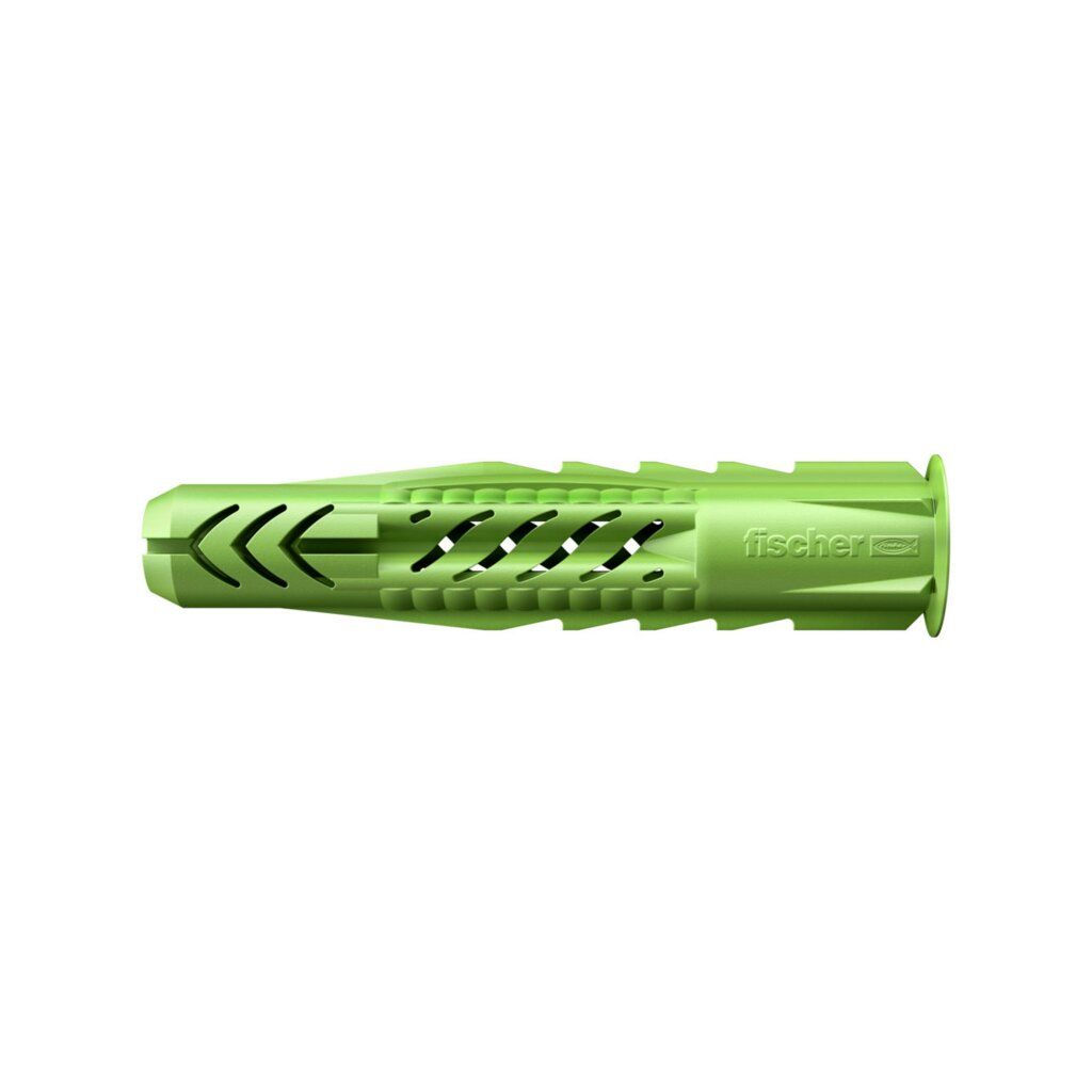 Der fischer Universaldübel UX Green ist ein Nylondübel aus nachwachsenden Rohstoffen. Der regenerative Materialanteil liegt bei mindestens 50 %. Der Universaldübel verspreizt in Vollbaustoffen und verknotet in Hohl- und Plattenbaustoffen für maximalen Halt. Damit ist der fischer UX Green immer die richtige Wahl – auch bei einem unbekannten Baustoff. Der Rand verhindert ein Tieferrutschen bei der Montage. In der Version ohne Rand und größerer Verankerungstiefe ist der fischer Universaldübel UX Green für die Durchsteckmontage geeignet. Der fischer Universaldübel UX Green wird in den Größen 6x35 bis 12x70 und wahlweise mit Schraube oder Haken angeboten. Er kann mit Holz- und Spanplatten- sowie Stockschrauben verwendet werden.
