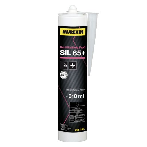 Sanitär Silikon Profi SIL 65+ ist ein lösemittelfreier, UV-, witterungs- und alterungsbeständiger, wasserdichter, bis 25% dehnfähiger, sauer vernetzender Silikondichtstoff (Acetatsystem) für den elastischen Verschluss von Rand-, Dehn- und Feldbegrenzungsfugen von z. B. keramischen Fliesenbelägen, korrosionsgeschützten Metallen, Emaille, viele Kunststoffe, Hart-PVC. Innen und außen. Hohe chemische Beständigkeit. Geeignet im Nassraumbereich und für Anschlussfugen an Fremdmaterialien. Bester Schutz vor Bakterien und Pilzbefall. Sehr gut modellierbar und lange Zeit glättfähig. Sehr emissionsarm. Große Farbvielfalt. Nicht für Naturstein und nicht unter Wasser.Verwendungshinweise
