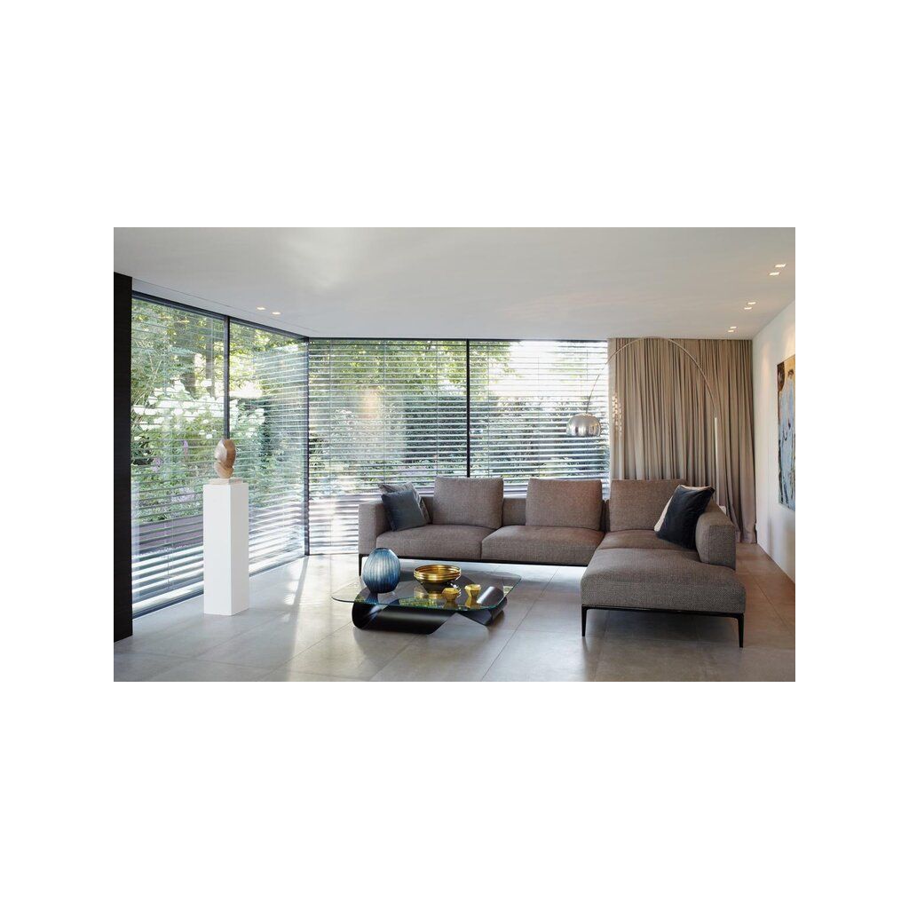 Der Modul-Raffstore ist ein flexibles System, das sich besonders für größere oder komplexe Fassaden eignet. Es ermöglicht die Kombination mehrerer Raffstore-Elemente zu einer durchgehenden Verschattungslösung. Die einzelnen Module können individuell gesteuert werden, um Licht und Schatten exakt nach Wunsch zu regulieren.