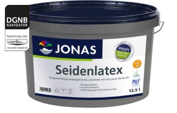 Seidenglänzende Latexfarbe in Premiumqualität für außen und innen. Strukturerhaltend, strapazierfähig, glanzstabil und UV-beständig, beständig gegen Desinfektionsmittel. Wetterbeständig. Konservierungsmittelfrei, lösemittelfrei und frei von…