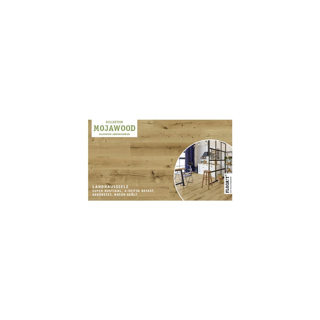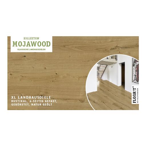 Mojawood bietet hochwertige Eichen-Dielen mit gebürsteter Oberfläche und lebendigem, natürlichem Charakter. Erhältlich in zwei Formaten und verschiedenen geölten Oberflächen – auch mit SafeTop® Technologie – für eine authentische Optik und zuverlässigen Schutz.Die patentierte Drop-Down-Klickverbindung ermöglicht eine schnelle und einfache Verlegung.
