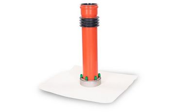 Flachdachdurchführung, zum Andübeln, zur Aufnahme von Kabeln mittels KRASO Wechseldichteinsatz - geteilt - (nicht im Lieferumfang enthalten), 360° schwenkbar, Einbindung in die Dachabdichtungsbahn mittels KRASO Folienklemmflansch Typ…