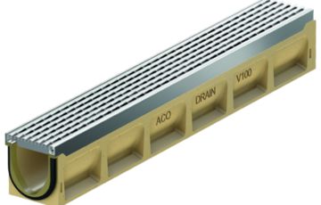 Linienentwässerungssystem aus Polymerbeton als Teil der ACO Systemkette zur Aufnahme und Ableitung des Oberflächenwassers