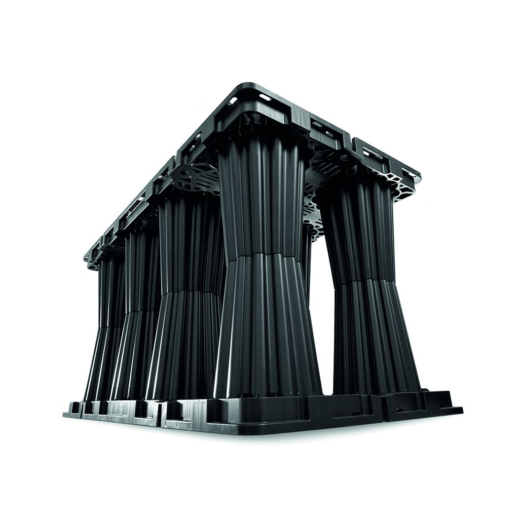 - Geringerer CO2-Ausstoß durch kleineren Transportaufwand aufgrund der Stapelbarkeit der Grundelemente