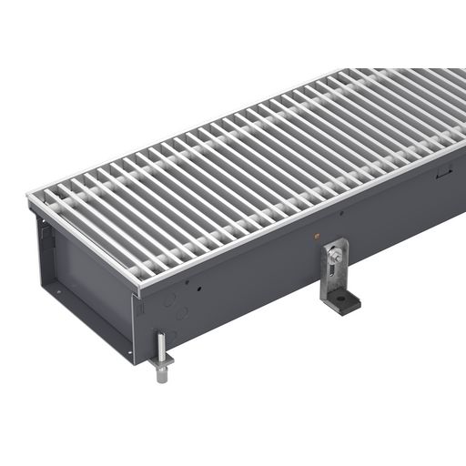 Bodenkanalheizungen Katherm QE sind die ideale Lösung, wenn der Einsatz eines Konvektors mit Pumpenwarmwasser nicht möglich oder nicht vorgesehen ist. Sie zeichnen sich durch energiesparende und sehr leise laufende EC-Querstromventilatoren in Kombination mit leistungsstarken Elektro-Heizregister aus, die für hohe Heizleistungen sorgen. Katherm QE sind vorzüglich für den Einbau vor bis zum Boden reichenden Fensterflächen. Ausgestattet mit moderner EC-Technologie findet die schnelle Aufheizung des Raumes bei einem niedrigen, nicht störenden Geräuschpegel statt.Luft wird raumseitig vom Ventilator angesaugt und über das parallel angeordnete Heizregister mit Luftführungsblechen geführt. Die erwärmte Luft strömt aus dem Bodenkanal heraus und steigt nach oben auf bzw. sorgt durch Luftwalzenbildung für eine optimale Kaltluftabschirmung des Fensters und einer zugfreien Warmluftwalze in den Raum. Ein Trennblech verhindert wirksam einen Kurzschluss zwischen Luftansaug und Luftaustritt. Die Ansteuerung des EC-Querstromventilators erfolgt über eine stufenlose Drehzahlsteuerung über ein externes 0-10 V Signal.