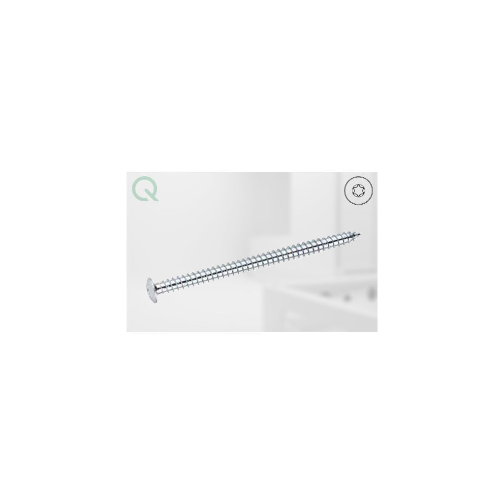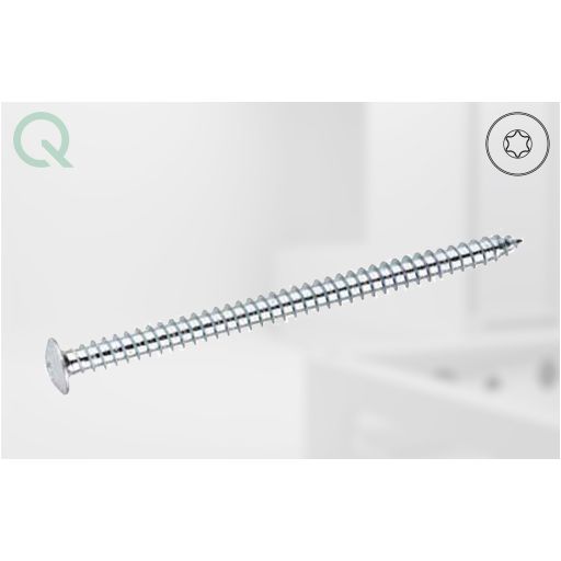 greenteQ Systemschraube mit Flachkopf für die optimale Fixierung von Fensterrahmen in Verbindung mit den Systemen greenteQ Klima Konform, greenteQ Fix Dynamics. Zusätzlich verfügt die greenteQ Systemschraube über eine RC2-Prüfung ohne Hinterklotzung.Die greenteQ Systemschraube ist zudem für die Befestigung von Fensterrahmen aus Kunststoff, Holz und Aluminium auf Beton, Vollsteinen, Ziegeln und anderen Baustoffen mit hohen Festigkeiten geeignet. Die Schraube ist aus einsatzgehärtetem Stahl, die Oberfläche ist hell verzinkt.