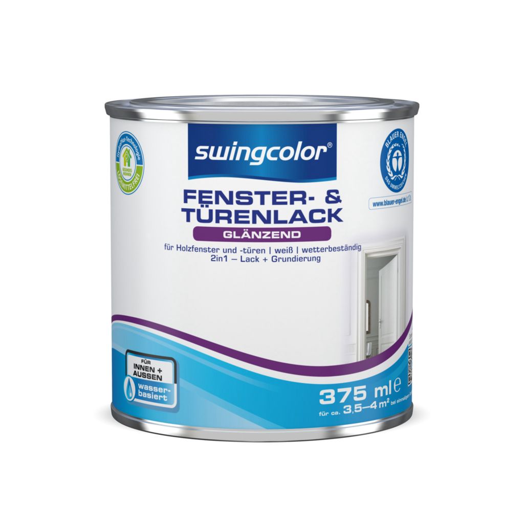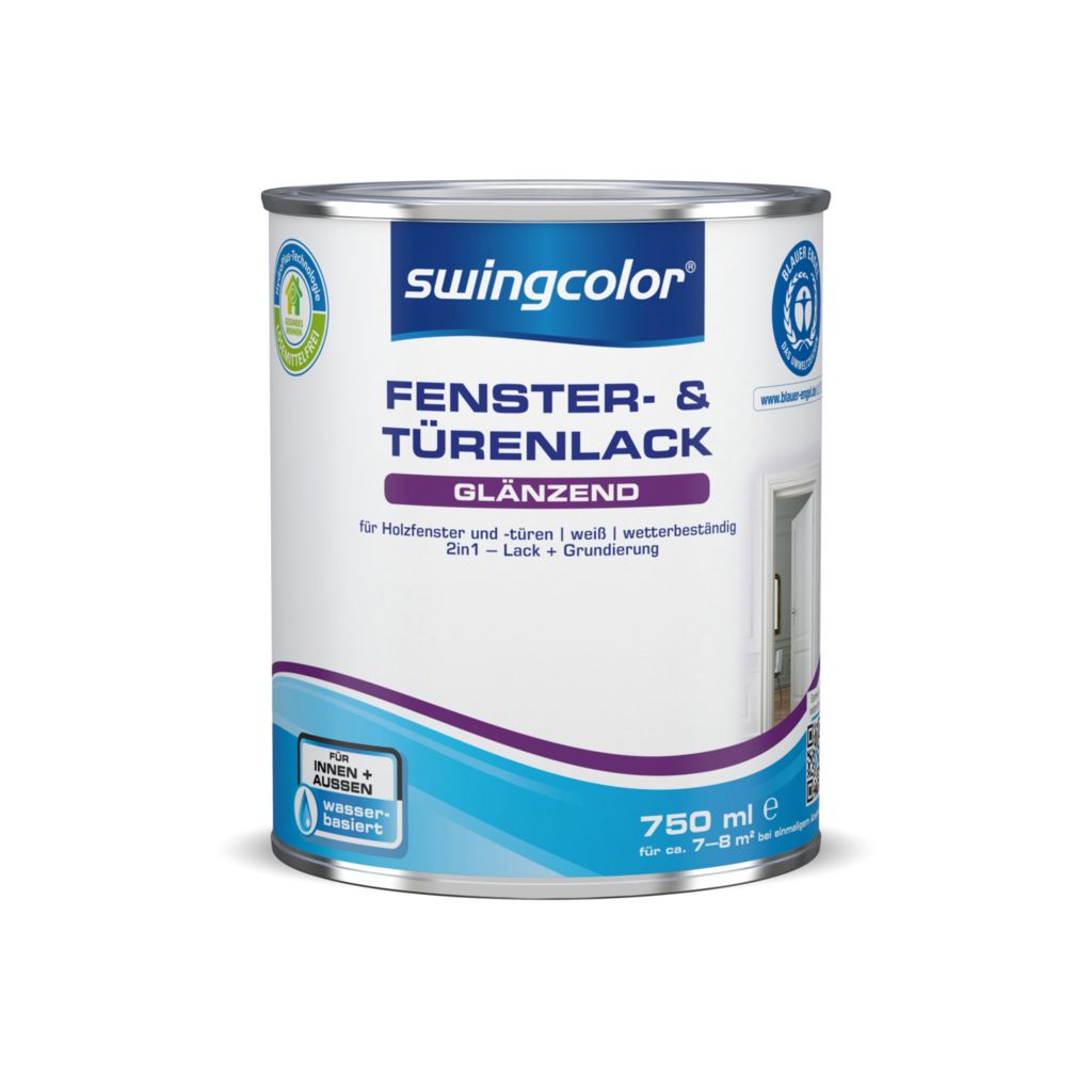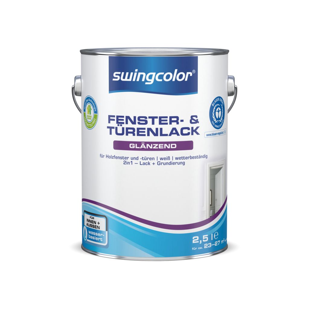 Der swingcolor® Fenster- & Türenlack ist ein weißer, wasserbasierter Acrylat-Lack, der speziell von swingcolor® für die Anwendung auf Holzfenstern und -türen entwickelt wurde. Neben einer guten Kantenabdeckung und hohen Deckkraft weist er zudem eine leichte Verarbeitung sowie Wetterbeständigkeit auf. swingcolor® Fenster- & Türenlack ist schnell trocknend, auch für grundierte Metalle verwendbar und sowohl für den Innen- als auch für den Außenbereich geeignet.Dokumente