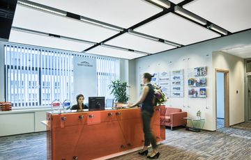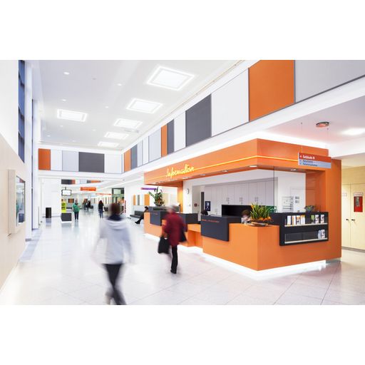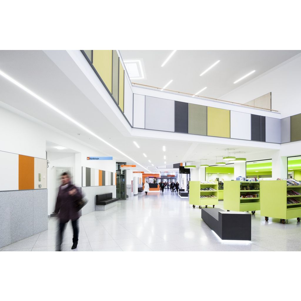 Mit Ecophon Focus™ Dg erhalten Sie eine einzigartige demontierbare abgehängte Akustikdecke. Die besondere Kantengestaltung verbirgt die Auflagekanten der Platten und sorgt so für ein scheinbar schwebendes Erscheinungsbild der Decke. Die…