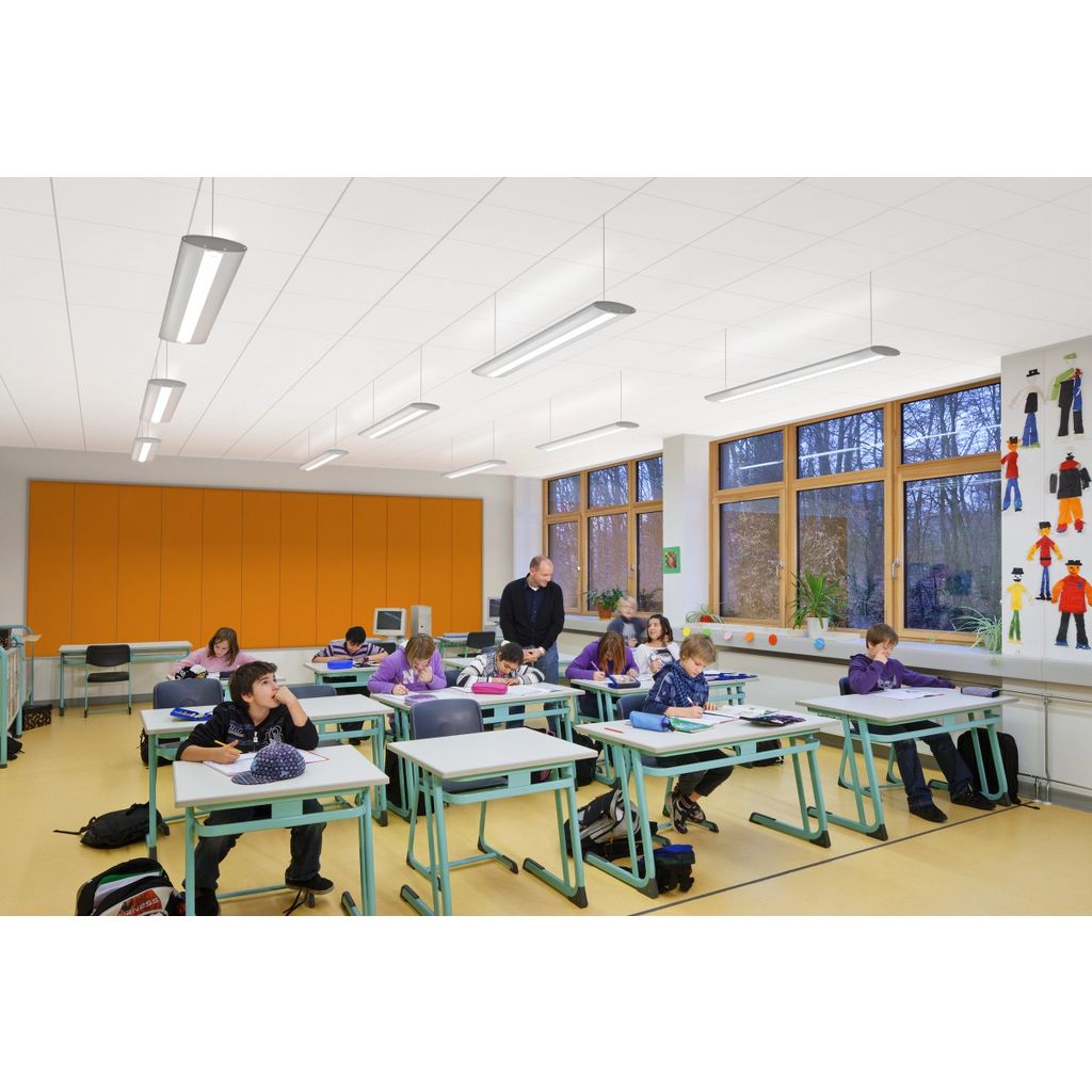 Ecophon Akusto™ Wall C ist ein Wandabsorber als Ergänzung zur Akustikdecke, um optimale akustische Bedingungen im Raum zu erzeugen. Dieses System zeichnet sich durch gefaste Kanten aus, die eine schmale Fuge zwischen den Paneelen erzeugen. Die Akustikpaneele sind aus Glaswolle hergestellt, wobei die sichtbare Oberfläche mit einer Textiloberfläche (Texona in verschiedenen Farben) oder mit einem besonders widerstandsfähigen Glasfasergewebe (Super G™ ) oder aber mit der Farbbeschichtung Akutex™ FT versehen ist. Die Rückseite der Absorber ist mit einem Vlies versehen.Verwendungshinweise