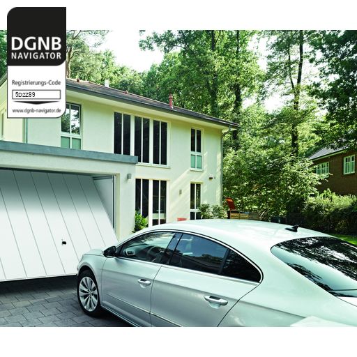 Hörmann Sammelgaragentore für die Außenanwendung. Hand- oder kraftbetätigte Tore zum Einbau in Zugangsbereichen von Personen. Die bestimmungsgemäße Verwendung besteht darin, eine sichere Zufahrt für Waren und Fahrzeuge, begleitet oder gesteuert von Personen, in industriellen, gewerblichen oder Wohnbereichen zu ermöglichen.Bezug zum DGNB System