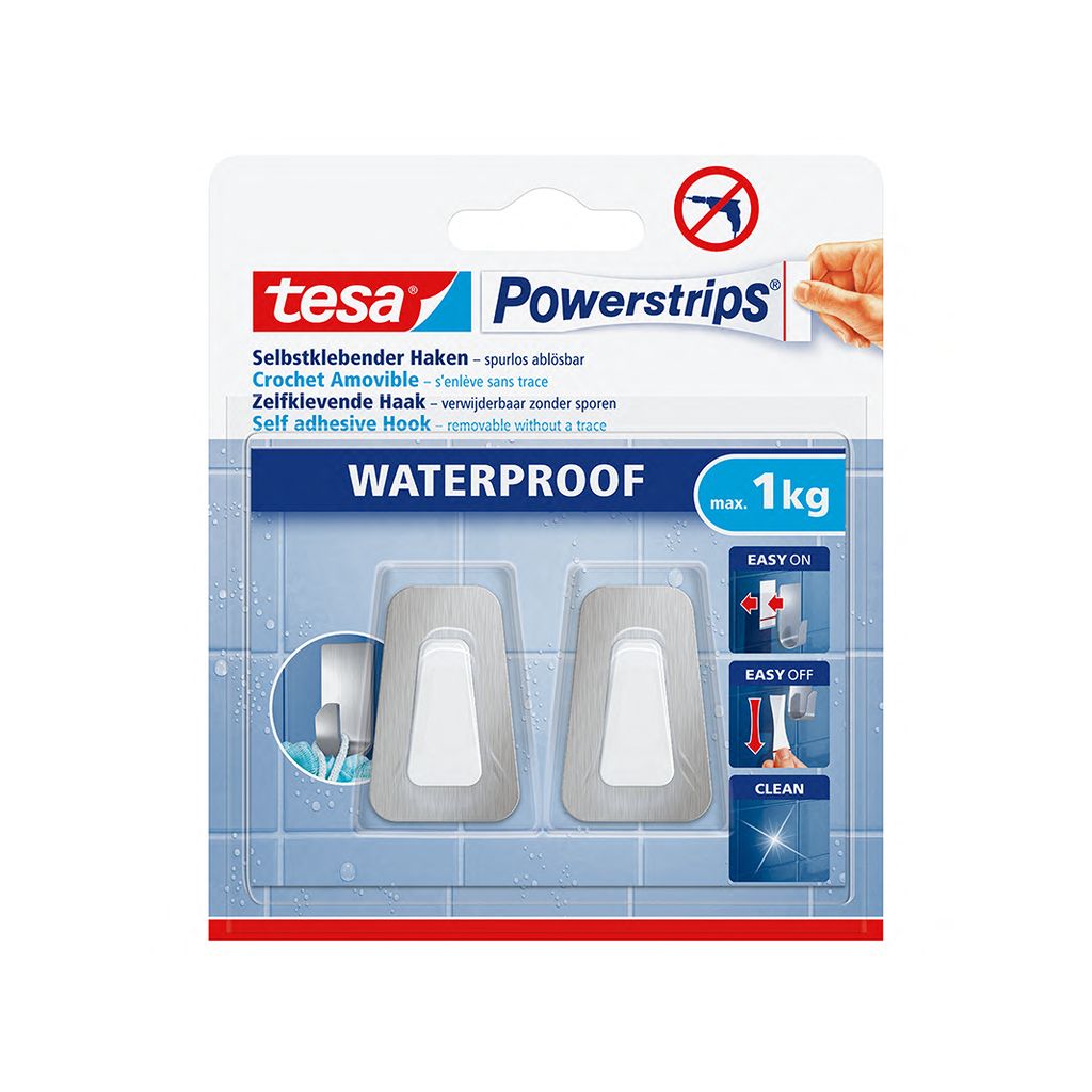 Mit den wasserfesten Powerstrips® ist das Befestigen von Badzubehör im Badezimmer eine einfache und saubere Sache. Dank der hohen Klebeleistung halten sie Badaccessoires bis zu einem Gewicht von zwei Kilogramm, so dass der Bohrer im Werkzeugschrank bleiben kann. Die innovativen Klebestrips lassen sich einfach anbringen und ohne Rückstände wieder ablösen. Sie wurden speziell für feuchte Räume entwickelt und können sogar direkt unter der Dusche verwendet werden. tesa bietet eine Vielzahl von Haken in unterschiedlichen Designs & Materialien, da ist für jeden Geschmack etwas dabei.Dokumente