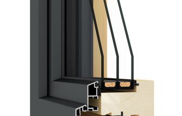 Holzaluminiumfenster 110 mm Bautiefe mit Dreifachverglasung mit Ug 0,5 W/m²K und Uw 0,74 W/m²K.