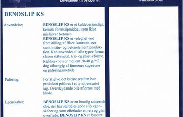 Benoslip KS is a cold-resistant, chemical release agent, which is made from recycling paraffin oils and degradable ISO-paraffins