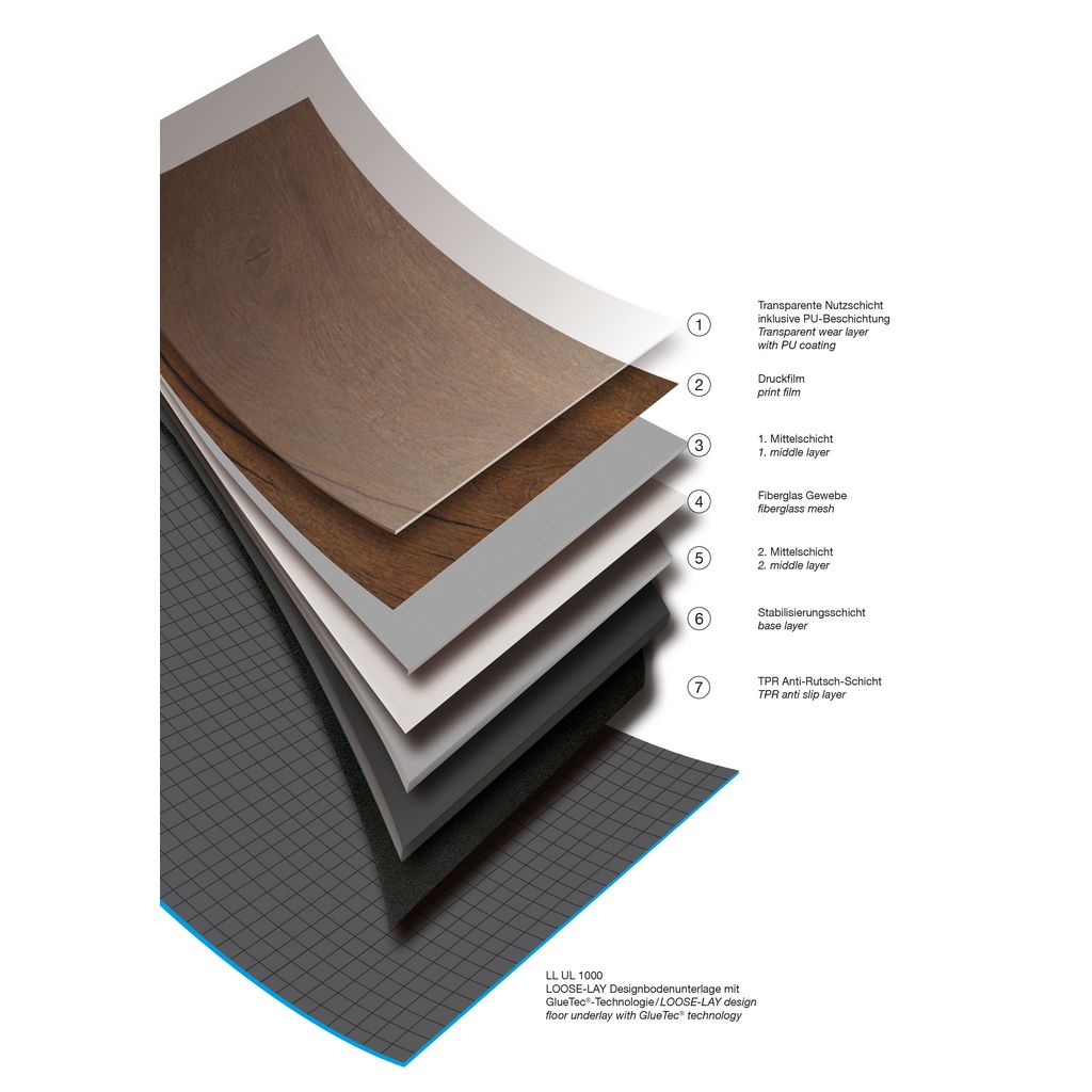 Hochwertiger Kunststoff-Designbodenbelag für hohe Beanspruchung im Objektbereich und höchste Beanspruchung im Wohnbereich. Klebstofffreie Verlegung, die jederzeit auch partiell aufnehmbar und nach der Verwendung rückbaubar ist.